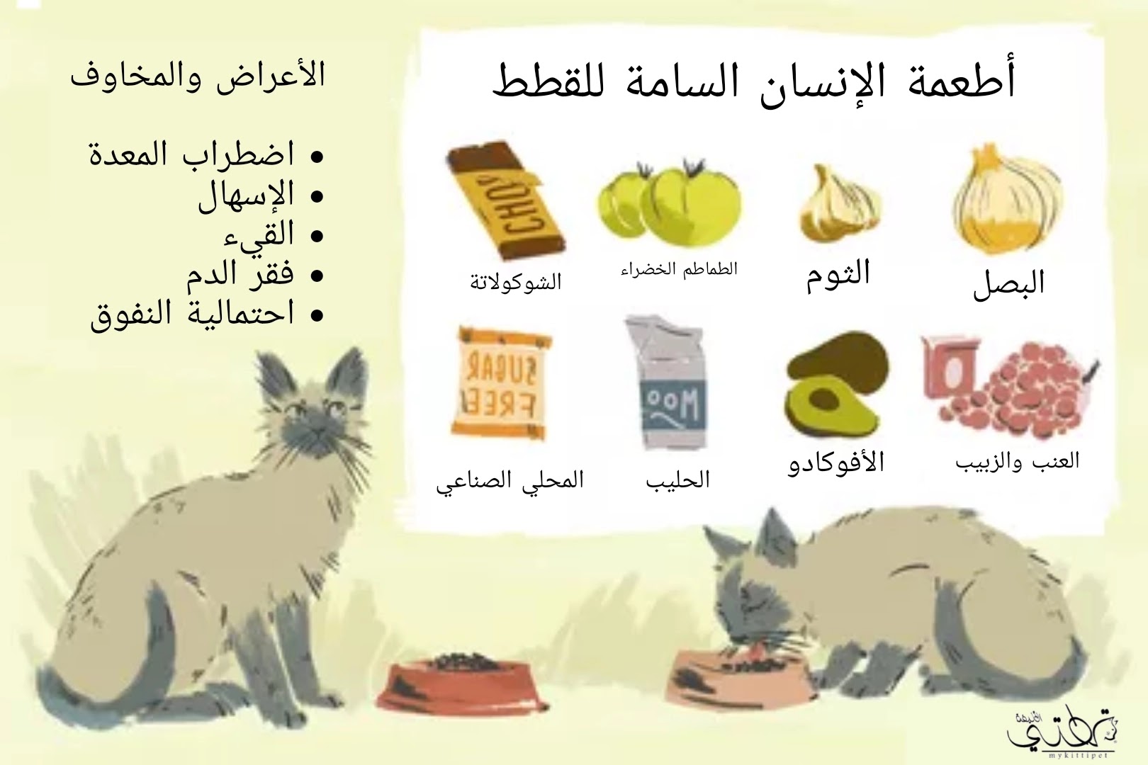 | رسم توضيحي الأطعمة البشرية السامة للقطط |